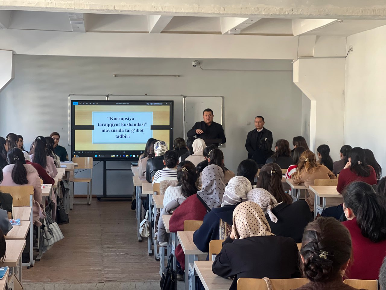 Tadbir davomida so‘zga chiqqan Korrupsiyaga qarshi kurashish “Komplayens nazorat” tizimini boshqarish bo‘limi boshlig'i S.Bobomurodov va institut profilaktika ispektori X. Muhammadiyevalar korrupsiyaning jamiyat taraqqiyotiga salbiy ta’siri, uning iqtisodiy va ma’naviy oqibatlari haqida atroflicha ma’lumot berdilar.