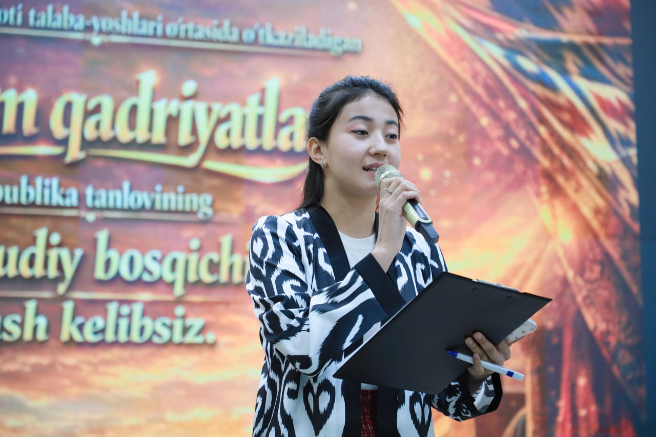 Mazkur tanlovda Samarqand viloyatidagi bir qator oliy ta’lim muassasalari jamoalari ishtirok etib, milliy qadriyatlarimiz, urf-odat va an’analarimizni targ‘ib etishga qaratilgan ijodiy chiqishlari hamda sahna ko‘rinishlari orqali o‘z mahoratlarini namoyon etmoqda.