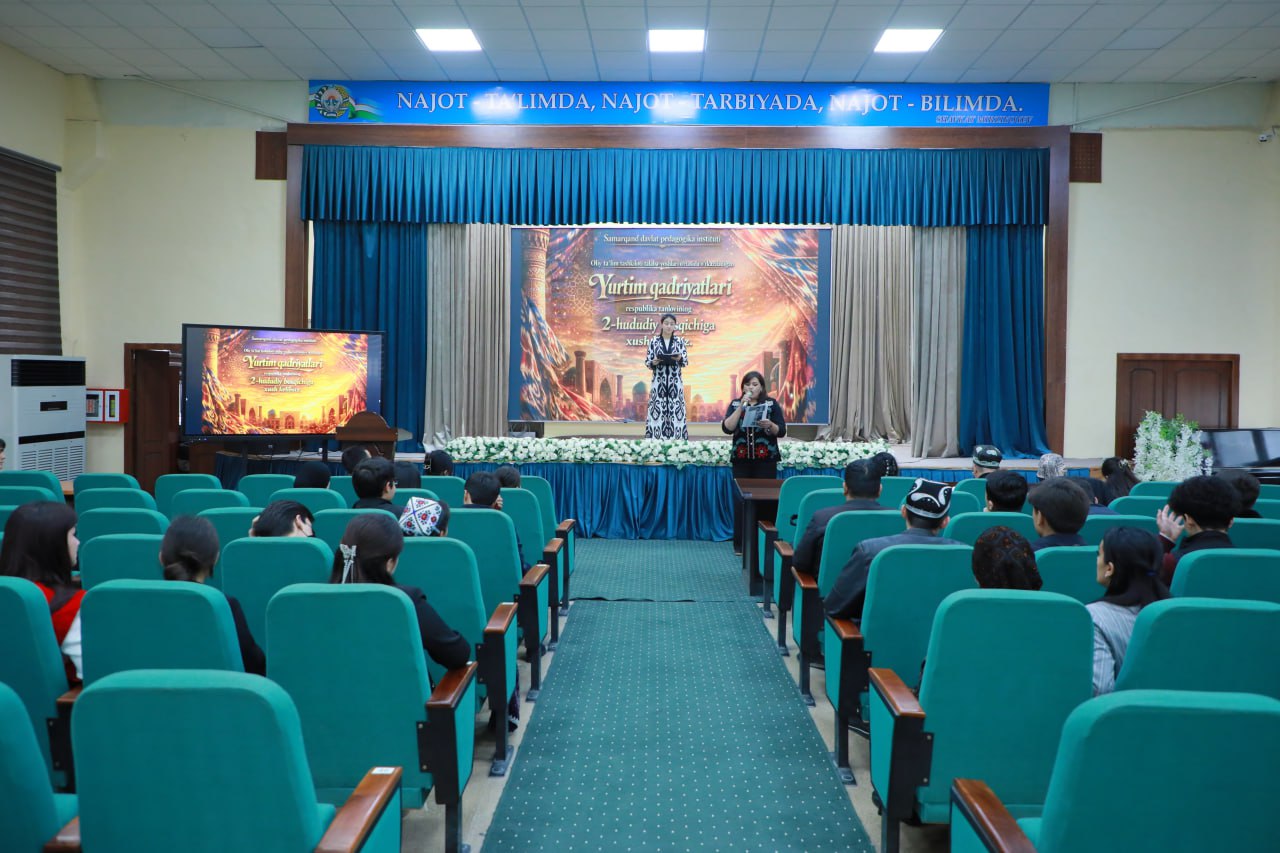 Samarqand davlat pedagogika instituti faollar zalida Oliy ta’lim tashkilotlari talaba-yoshlari o‘rtasida o‘tkazilayotgan “Yurtim qadriyatlari” respublika tanlovining 2-hududiy bosqichi bo‘lib o‘tmoqda.