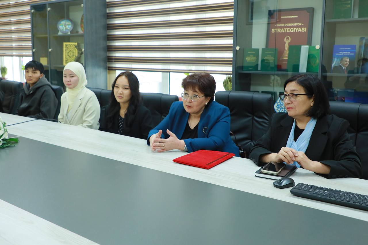 Qirg‘iziston Respublikasining T. Ermatov nomidagi Bishkek musiqa-pedagogika instituti davlat tili va tarbiyaviy ishlar bo‘yicha prorektori Tamara Dildebek boshchiligidagi delegatsiya a’zolari Samarqand davlat pedagogika institutiga tashrif buyurdi.