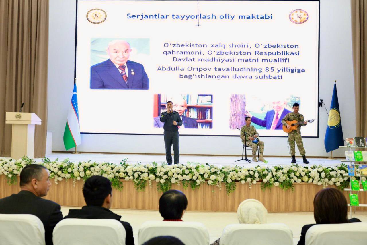 Samarqand shahar Serjantlar tayyorlash oliy maktabida O‘zbekiston Qahramoni, O‘zbekiston xalq shoiri, jamoat arbobi hamda O‘zbekiston Respublikasi Davlat madhiyasi matni muallifi Abdulla Oripov tavalludining 85 yilligiga bag‘ishlangan ma’naviy-ma’rifiy tadbir tashkil etildi.