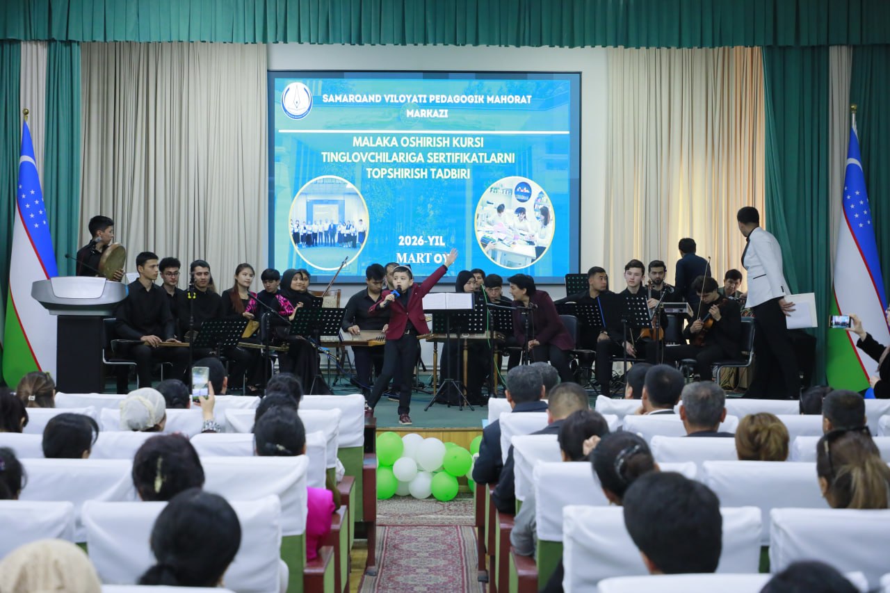 Samarqand viloyati Pedagogik mahorat markazining katta faollar zalida Samarqand davlat pedagogika institutining “Cholg‘uchilar ansambli va orkestri” tomonidan konsert dasturi tashkil etildi.