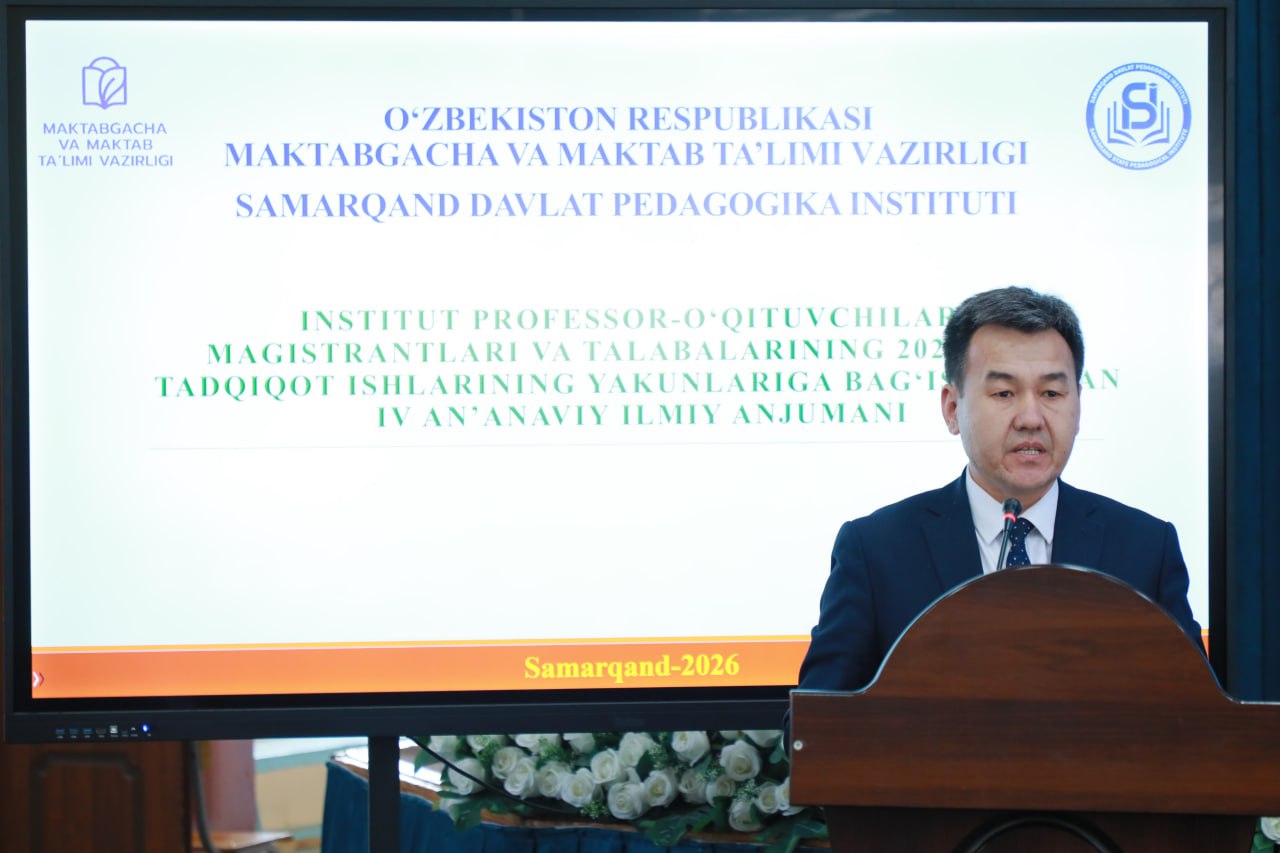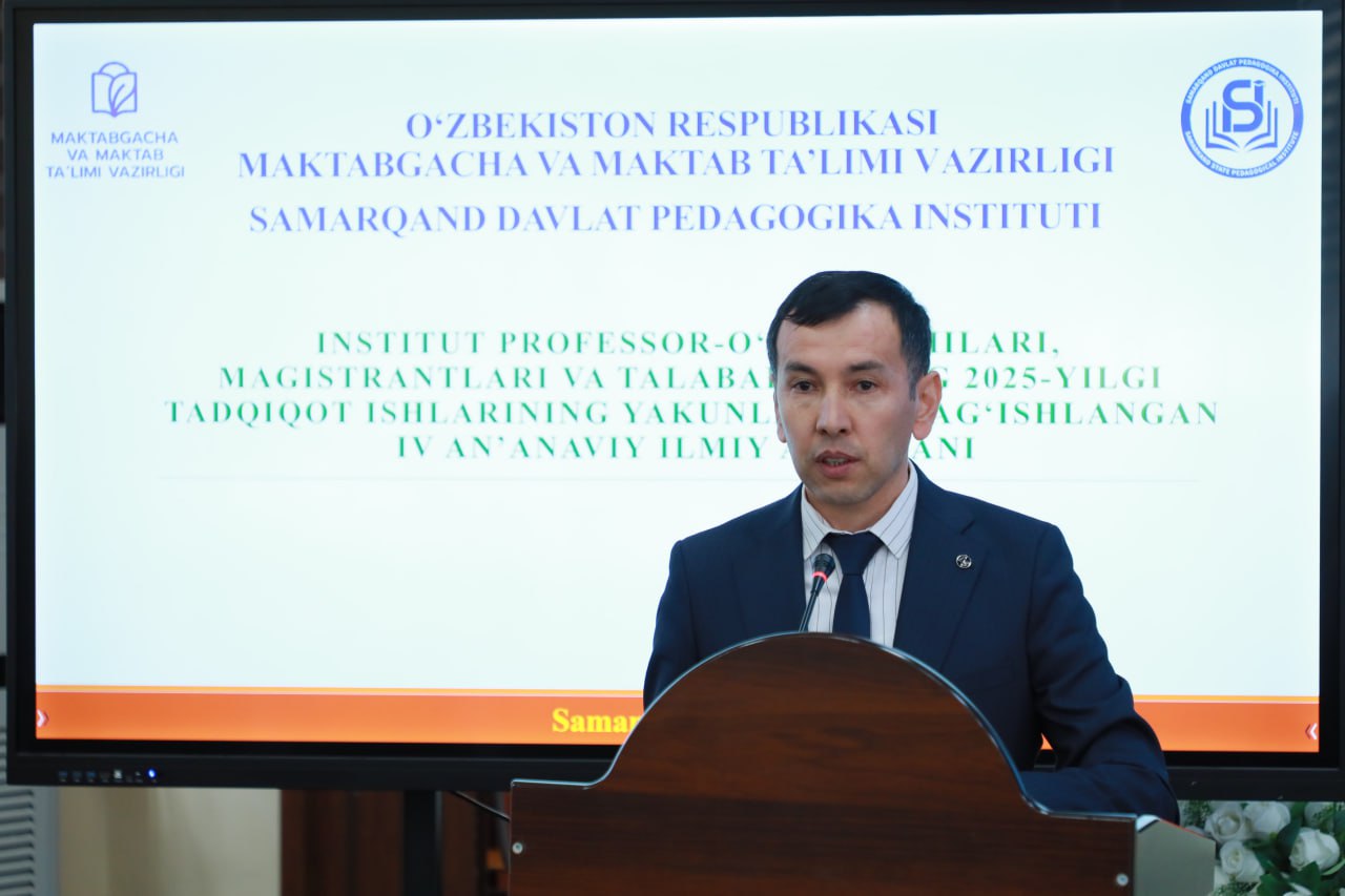 Samarqand davlat pedagogika institutida professor-o‘qituvchilar, tadqiqotchilar, magistrantlar va talabalarning 2025-yil davomida amalga oshirgan ilmiy-tadqiqot ishlari yakunlariga bag‘ishlangan IV an’anaviy ilmiy anjumanining yalpi majlisi bo‘lib o‘tdi