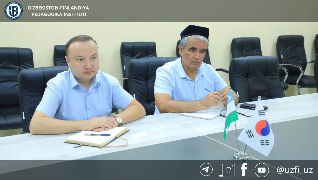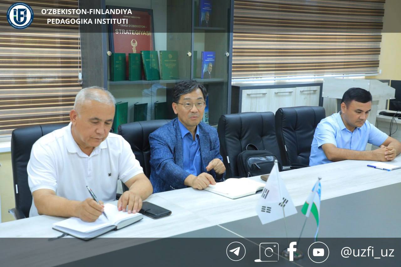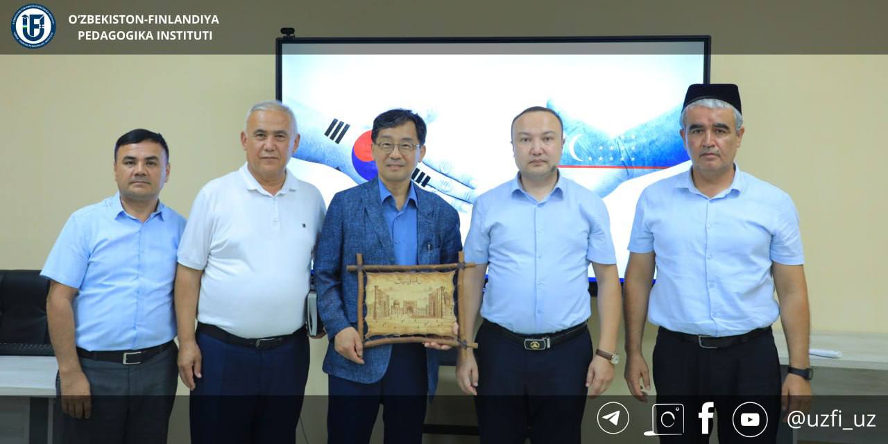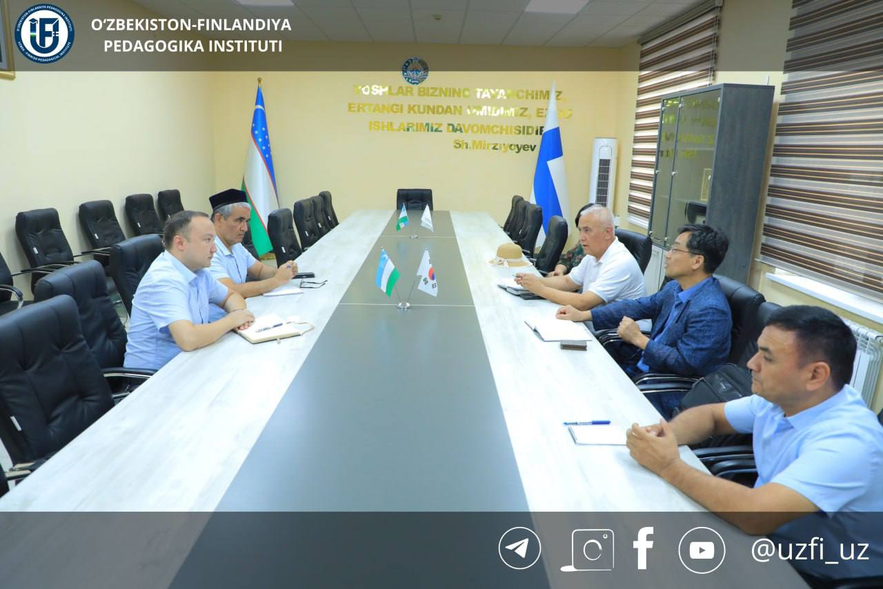 Janubiy Koreyaning Keimyung College University ta'lim muassasasi prorektori, professor Lee Sang Seog boshchiligidagi delegatsiya O'zbekiston-Finlandiya pedagogika institutida bo'lib, ilmiy ishlar va innovatsiyalar bo'yicha prorektor Akbar Safarov va xalqaro hamkorlik bo'limi mudiri Mahmud Jumayev bilan uchrashuv o'tkazdi.