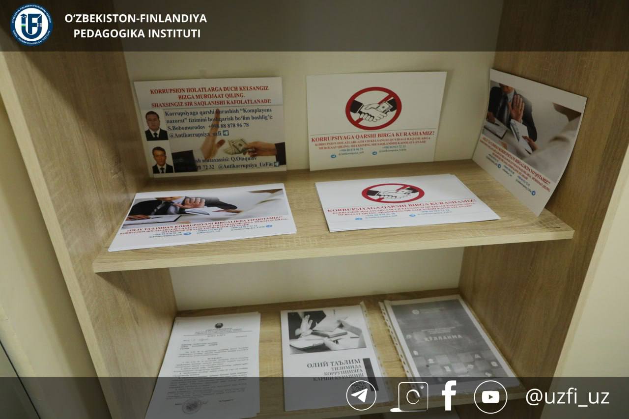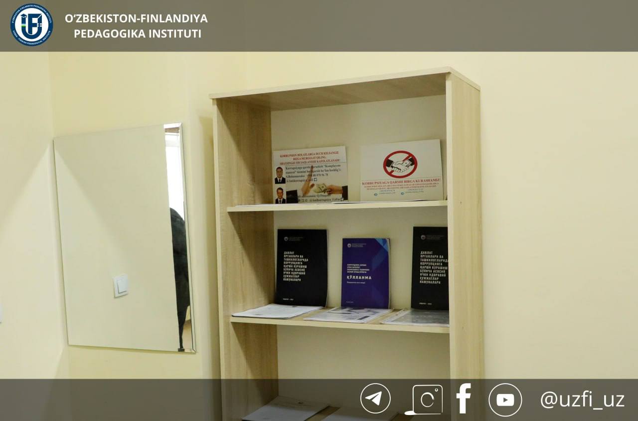 Oʻzbekiston-Finlandiya pedagogika instituti rektori Shahzoda Negmatova yangi tashkil etilayotgan “Aksilkorrupsiya kovorking” markazi bilan tanishdi.