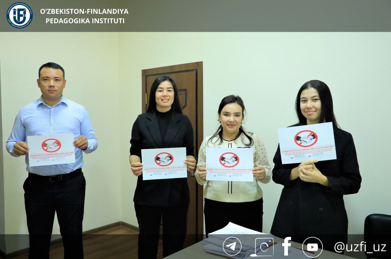O‘zbekiston-Finlandiya pedagogika institutida "Korrupsiyaga qarshi birgalikda kurashamiz" shiori ostida chellenj o'tkazildi.