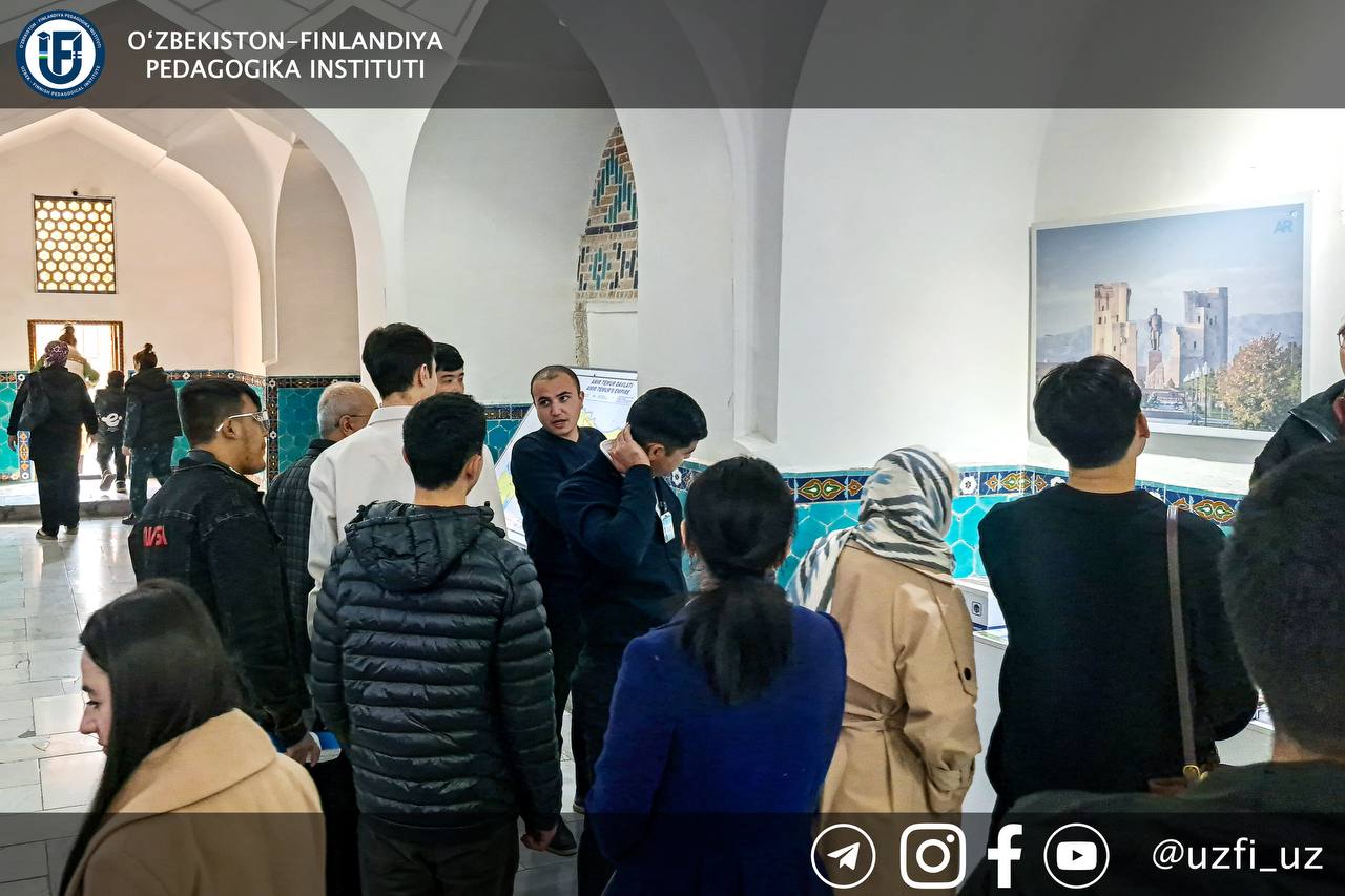 U geografiya va iqtisodiy bilim asoslari ta'lim yo'nalishi talabalari uchun "Shaharlar geografiyasi" mavzusidagi darsida O‘zbekiston Respublikasi Prezidentining 2023-yil 3-iyuldagi “Ma’muriy islohotlar doirasida oliy ta’lim, fan va innovatsiyalar sohasida davlat boshqaruvini samarali tashkil qilish chora-tadbirlari to‘g‘risida”gi PQ-200-son Qarori ijrosini ta’minlash hamda talabalarning nazariy bilimlarini amaliyotda mustahkamlash, ularni kasbiy faoliyatga tayyorlash darajasi va sifatini oshirish maqsadida Samarqand shahri bo'ylab sayohat qilib, tarixiy obidalar va zamonaviylik uyg'unlashgan noyob arxitekturaning guvohi bo'lishdi.