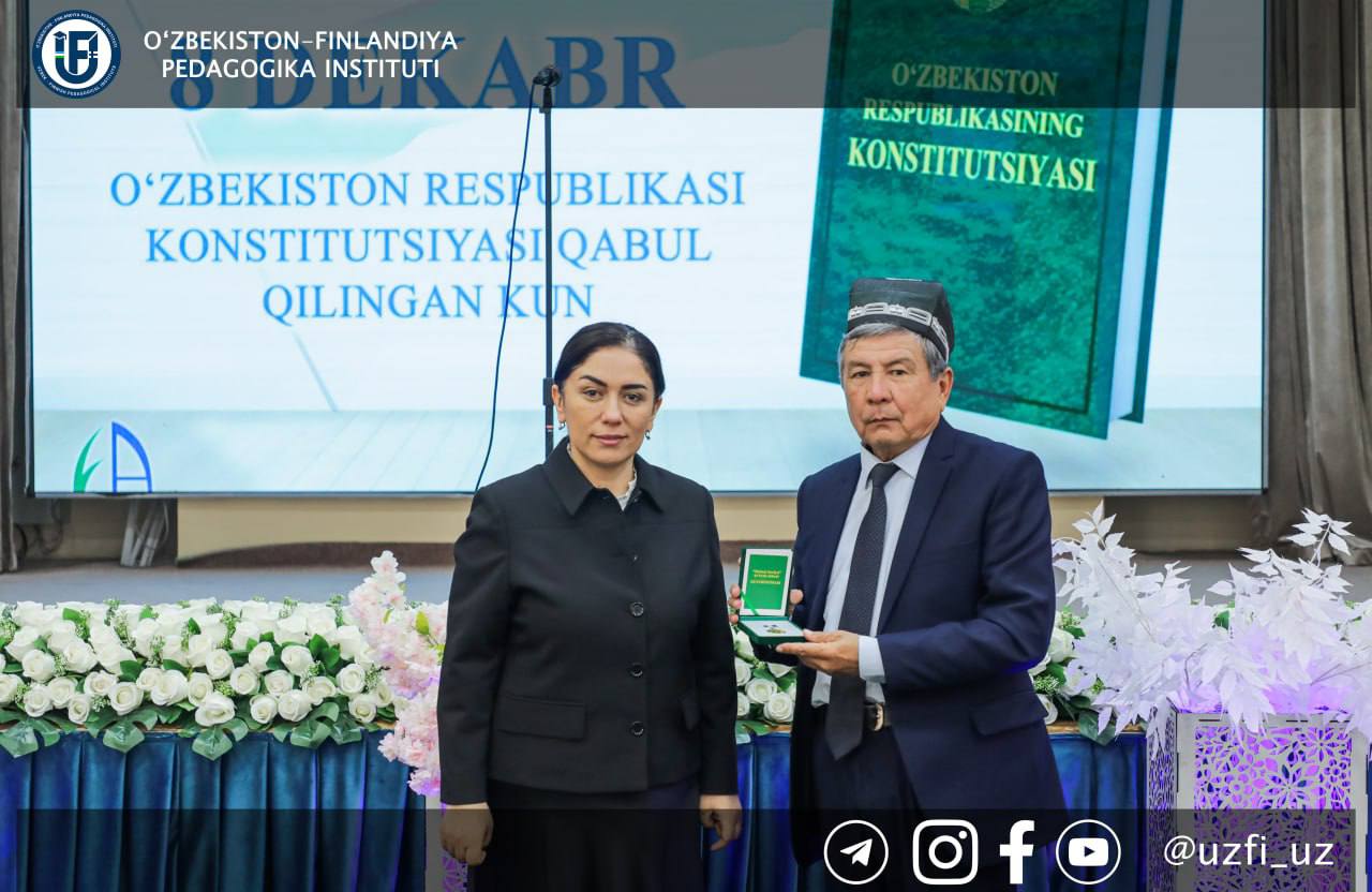 O'zbekiston-Finlandiya pedagogika instituti rektori Shahzoda Negmatova 8-dekabr - O'zbekiston Respublikasi Konstitutsiyasi kuni munosabati bilan tashkil etilgan bayram tadbirida ishtirok etib, institut professor-o'qituvchilari va talabalarni ushbu sana munosabati bilan samimiy tabrikladi.