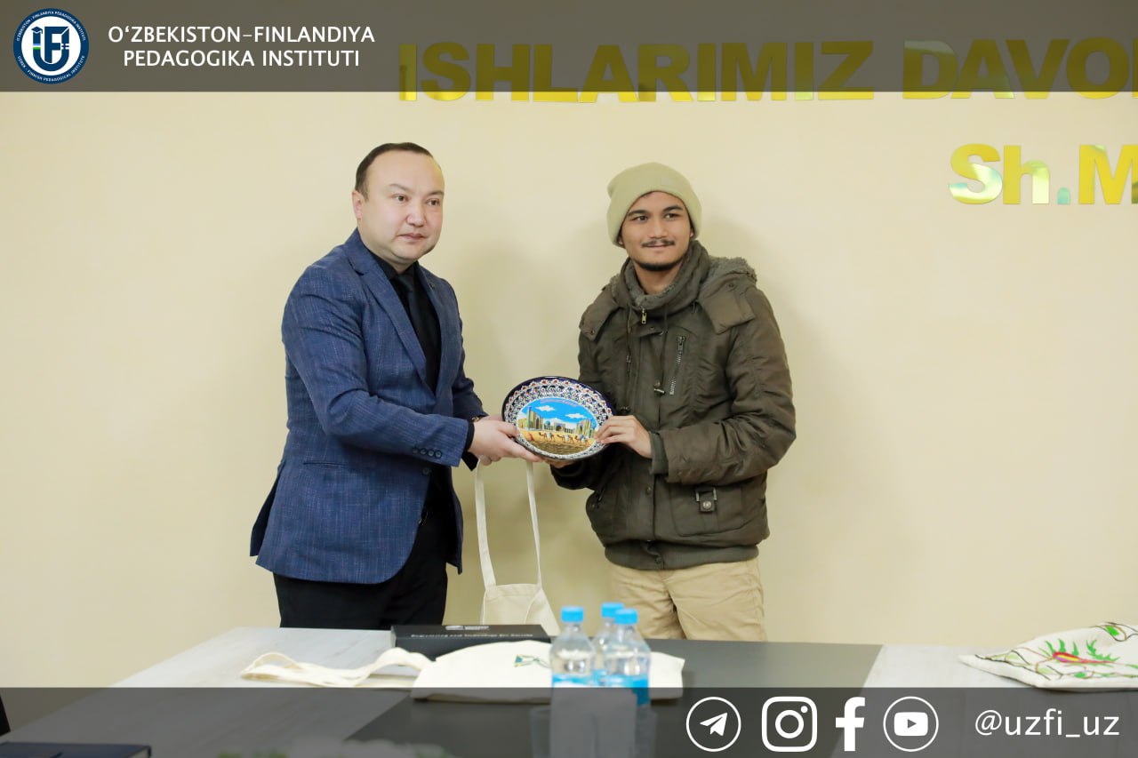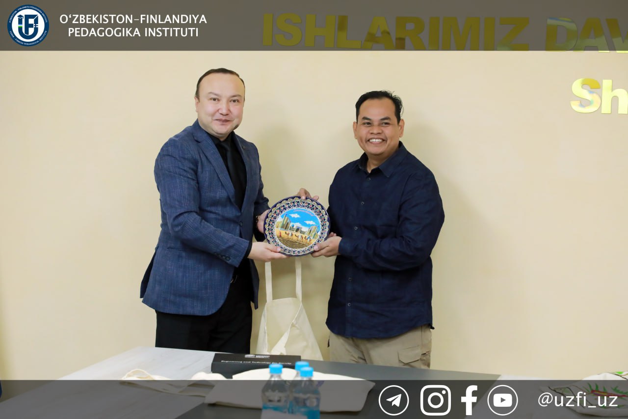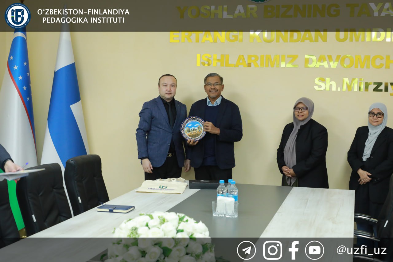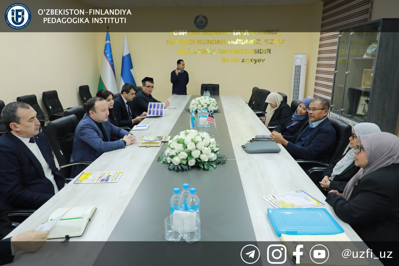 Bugun O‘zbekiston-Finlandiya pedagogika institutida Malayziyaning Perlis universiteti vakillari ishtirokida uchrashuv bo‘lib o‘tdi. Unda ilmiy tadqiqotlar sohasida qo‘shma loyihalarni amalga oshirish, akademik almashinuv dasturlarini kengaytirish, innovatsion texnologiyalarni joriy etishda tajriba almashish va o‘quv jarayonlarini takomillashtirish masalalari muhokama qilindi.