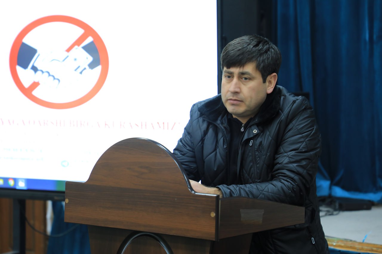 Tadbirda mas'ullar tomonidan  jinoyatchilik va huquqbuzarlik, korrupsiya illati, uningning salbiy oqibatlari hamda korrupsiyaga qarshi kurashish borasida olib borilayotgan amaliy ishlar to'g'risida talabalarga ma'lumotlar berildi. Xususan, korrupsiyaga qarshi kurashishga hamma birdek mas'ul ekanligi ta'kidlandi. Davra suhbati davomida talaba-yoshlar o'zlarini qiziqtirgan savollarga javob oldi.