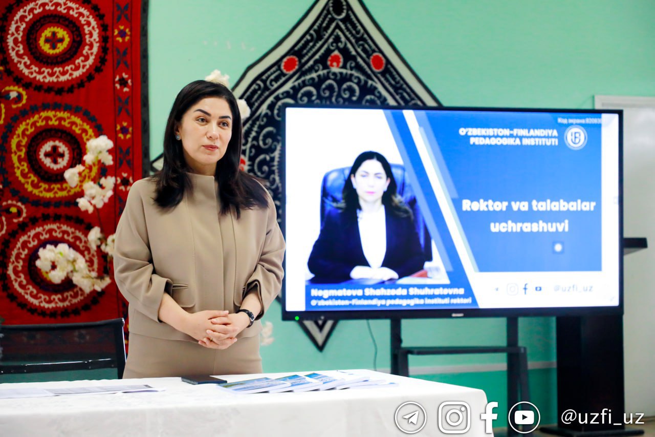 O‘zbekiston-Finlandiya pedagogika instituti rektori, professor Shahzoda Negmatova pedagogika va jismoniy madaniyat fakultetining bitiruvchi bosqich talabalari bilan ochiq muloqot o‘tkazdi.