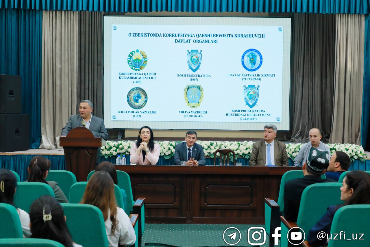 Davra suhbati qizgʻin savol-javoblar, ochiq muloqotlar ruhida oʻtib, talabalar oʻzlarini qiziqtirgan savollarga batafsil javob olishdi. Tadbir ishtirokchilarda korrupsiyaga nisbatan murosasiz munosabatni shakllantirish, unga qarshi kurashish borasida faollikni oshirishga xizmat qildi.