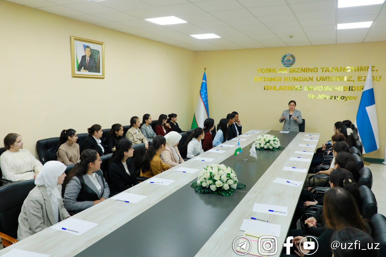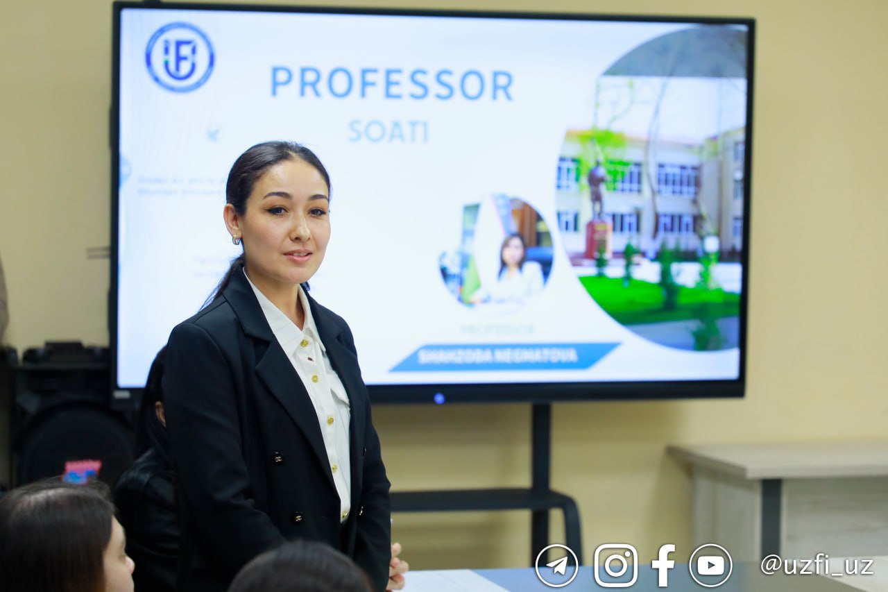 O‘zbekiston-Finlandiya pedagogika instituti rektori, professor Shahzoda Negmatova institutda O‘zbekiston Respublikasi Prezidenti va nomli davlat stipendiyalari sohiblari, ushbu mukofotlarga nomzod talabalar, fan olimpiadalari g‘oliblari hamda turli yo‘nalishlarda muvaffaqiyat qozongan yoshlar bilan “Professor soati” mashg‘ulotini o‘tkazdi.