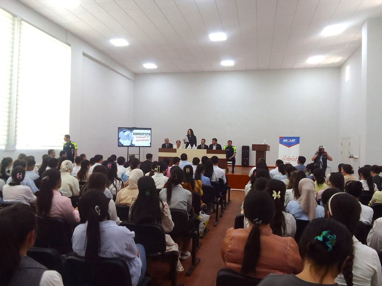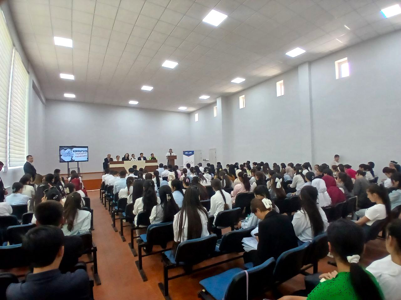 Mazkur tadbir institutda korrupsiyaga qarshi madaniyatni oshirish, talaba-yoshlar va pedagog xodimlar o‘rtasida huquqiy ong va faollikni kuchaytirish maqsadida tashkil etildi.