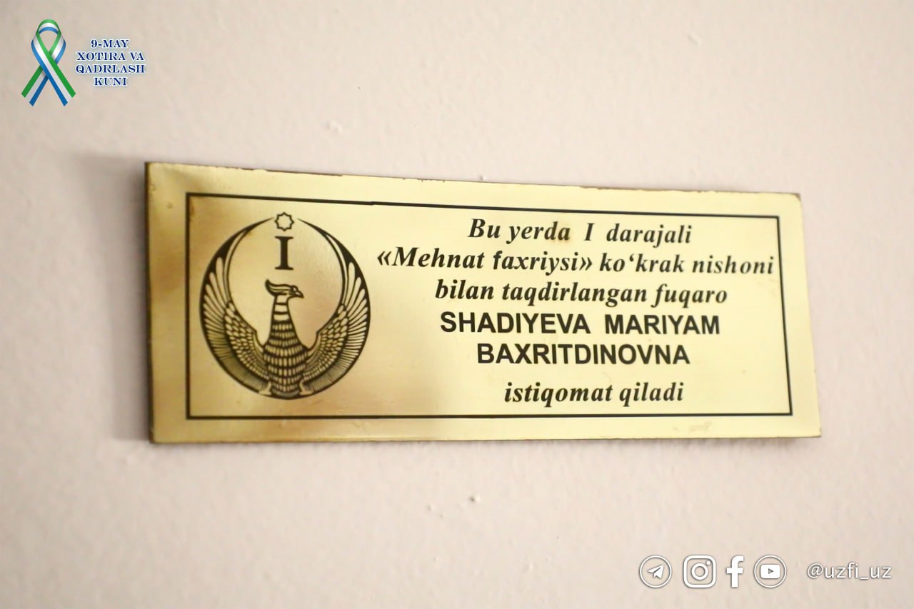 O‘zbekiston XDP Samarqand shahar kengashi deputati, O‘zbekiston-Finlandiya pedagogika instituti rektori Shahzoda Negmatova “9-may – Xotira va qadrlash kuni” munosabati bilan Samarqand shahridagi “Bog‘isaroy” mahallasida yashovchi 1-darajali “Mehnat faxriysi” ko‘krak nishoni sohibasi Maryam Shodiyeva xonadonida bo‘ldi.