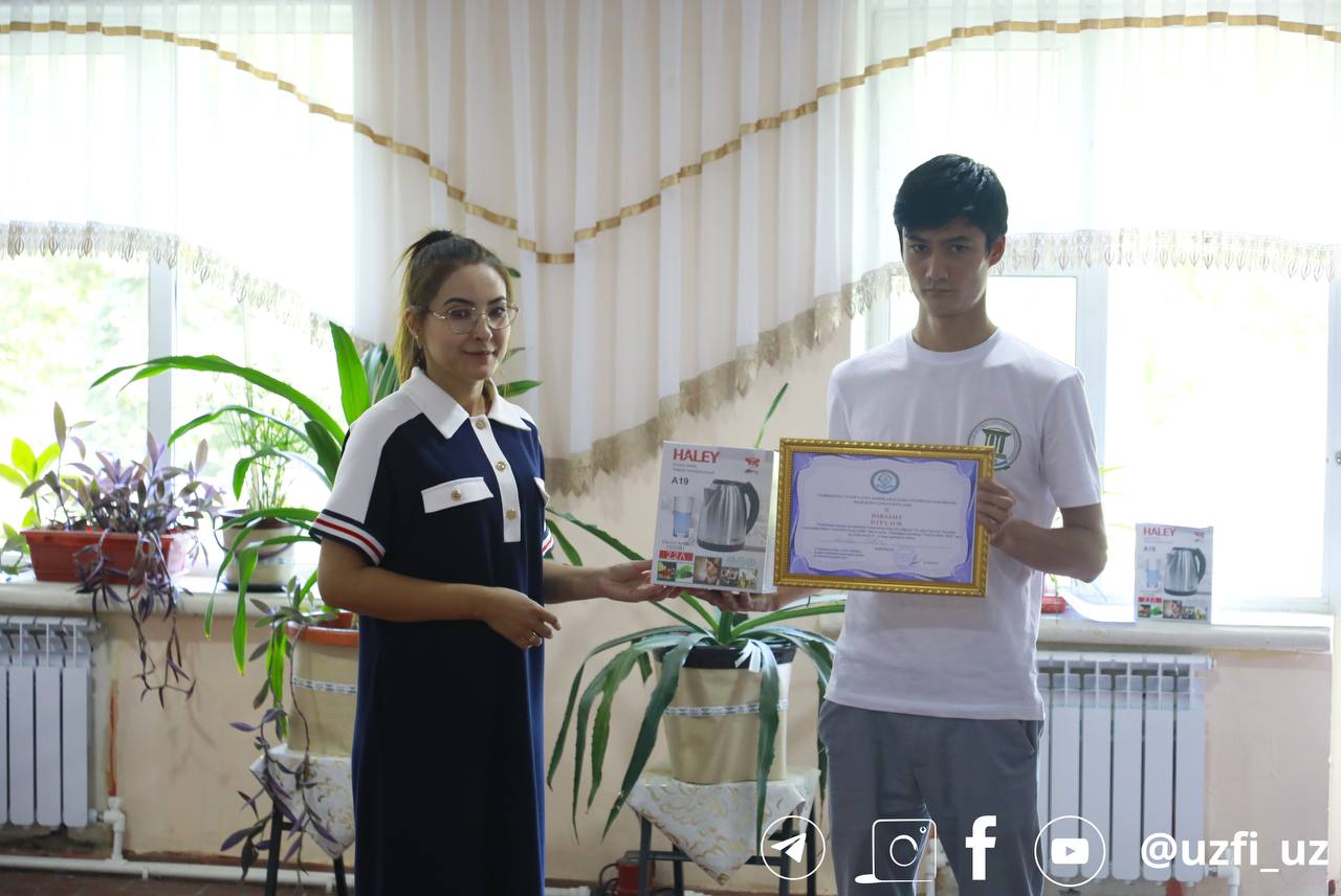 va ularning ustozi, informatika kafedrasi o‘qituvchisi Bahrom Aminovlar faxriy yorliq va esdalik sovg‘alari bilan rag‘batlantirildi.