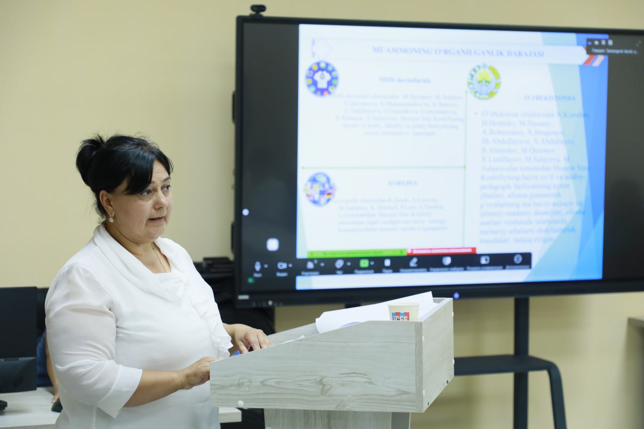 Seminar davomida ikki nafar tadqiqotchining dissertatsiya mavzusi yuzasidan taqdimotlari tinglandi. Janonova Sitora Berdinazarovna “Ta’lim va tarbiya integratsiyasida shaxs kommunikativ kompetensiyasini oshirish zarurati” mavzusida, Kutlimuratova Nargiza Rustamovna esa “Husayn Voiz Koshifiyning pedagogik g‘oyalari asosida talabalarda ma’naviy-axloqiy jihatlarini rivojlantirish metodikasi” mavzusida ilmiy chiqish qildi.