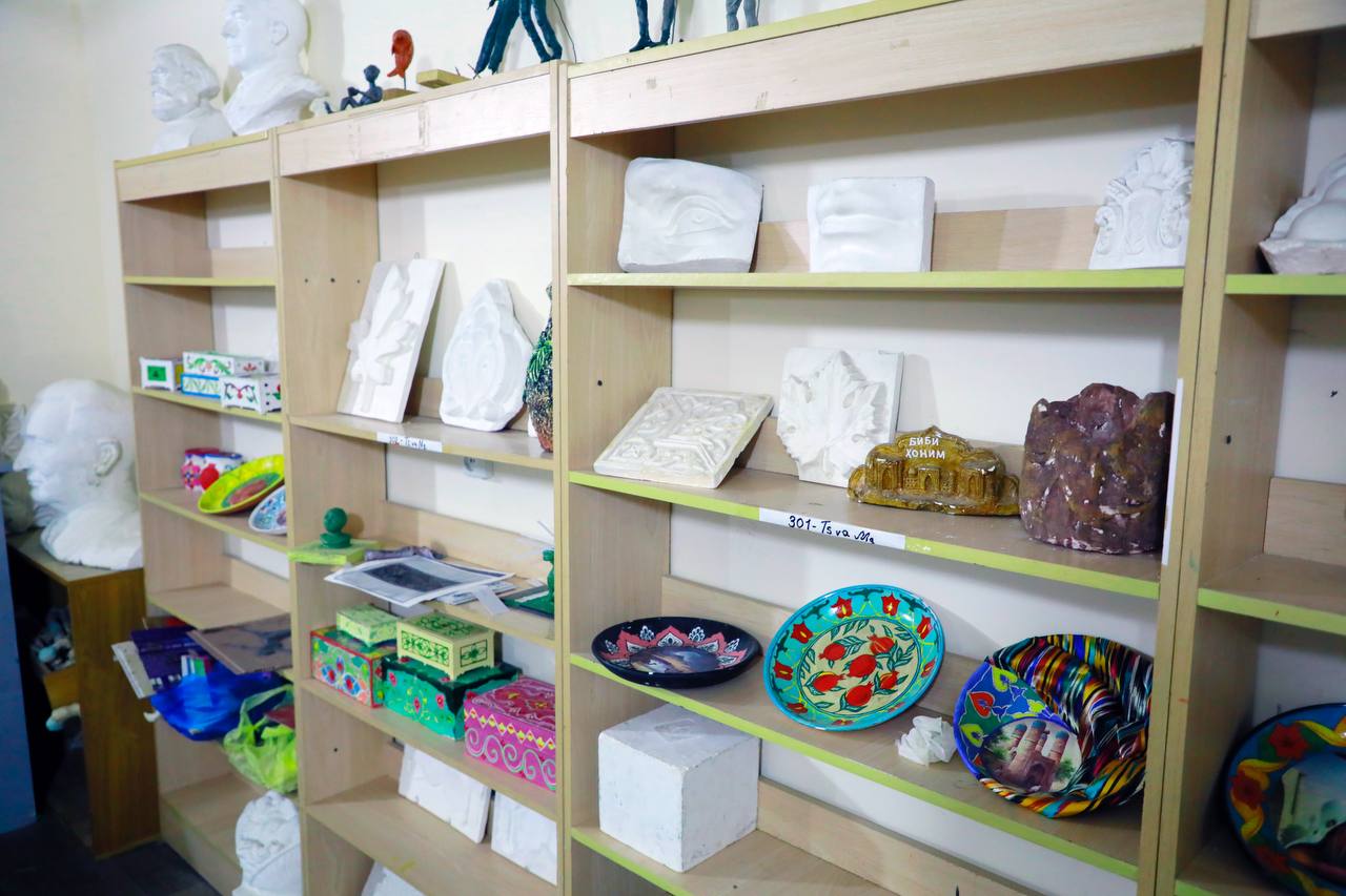 Rektor haykaltaroshlik, rassomchilik, naqqoshlik va o‘ymakorlik yo‘nalishlariga mo‘ljallangan o‘quv xonalarining bugungi holati bilan tanishib, mas’ullarga zarur tavsiyalar berdi hamda mavjud ishlarni yanada takomillashtirish bo‘yicha ko‘rsatmalar berdi.