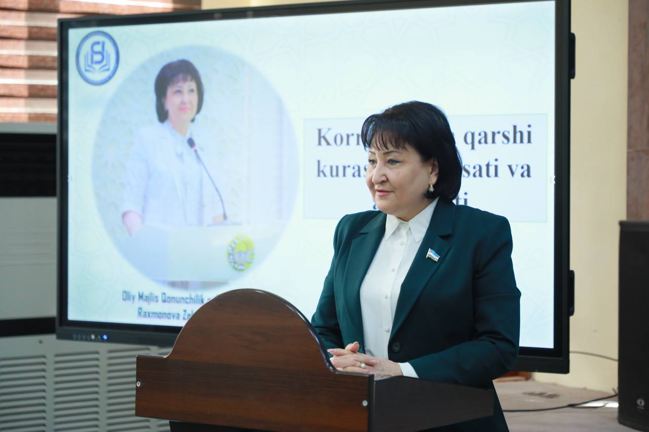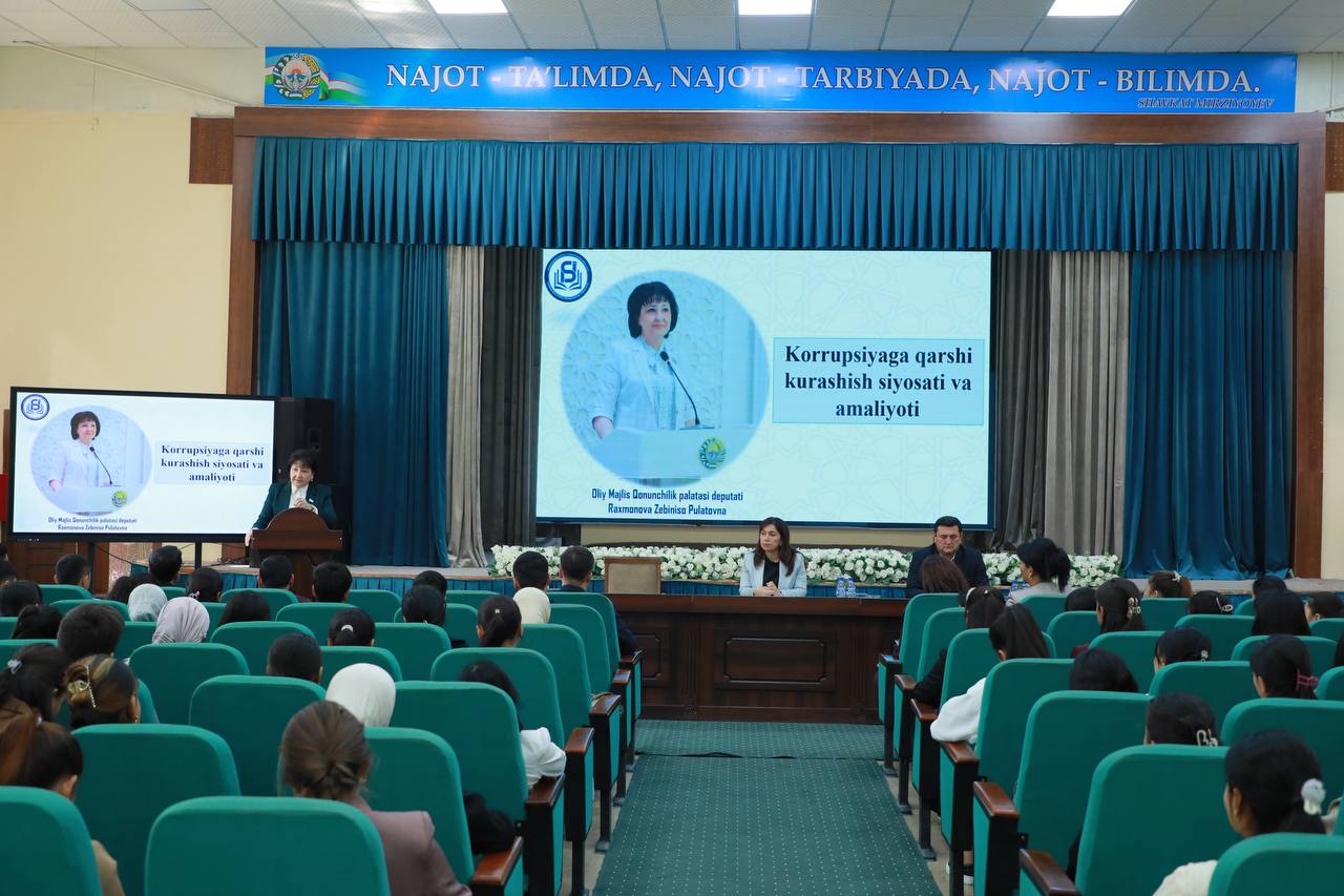 Tadbir davomida korrupsiyaga qarshi kurashish siyosatining dolzarbligi, uning ta’lim sohasiga ta’siri hamda yoshlar ongida halollik va poklik tamoyillarini shakllantirish masalalari yuzasidan atroflicha fikr-mulohazalar bildirildi.