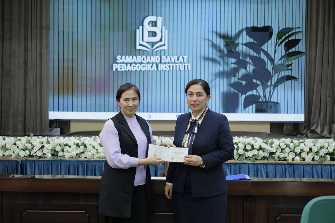 Samarqand davlat pedagogika instituti rektori, professor Shahzoda Negmatova ilmiy unvon va darajaga ega bo‘lgan professor-o‘qituvchilar bilan uchrashib, ularni ushbu yutuqlari bilan tabrikladi.
