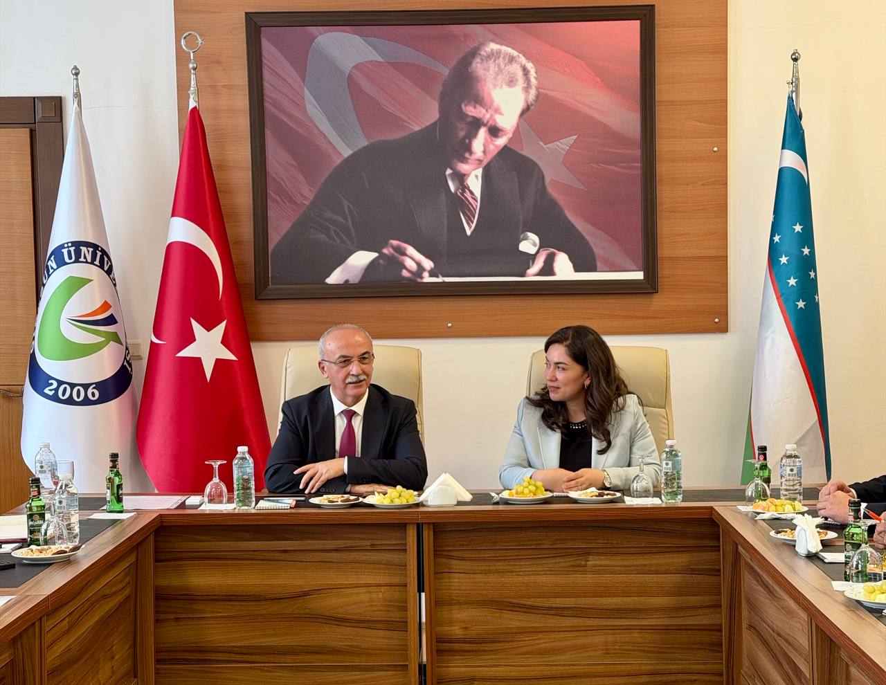 Turkiyaning Giresun universiteti rektori Prof. Dr. Yilmaz Can hamda Samarqand davlat pedagogika instituti rektori professor Shahzoda Negmatova hamkorlikni yanada rivojlantirish masalalari bo‘yicha uchrashuv o‘tkazmoqda