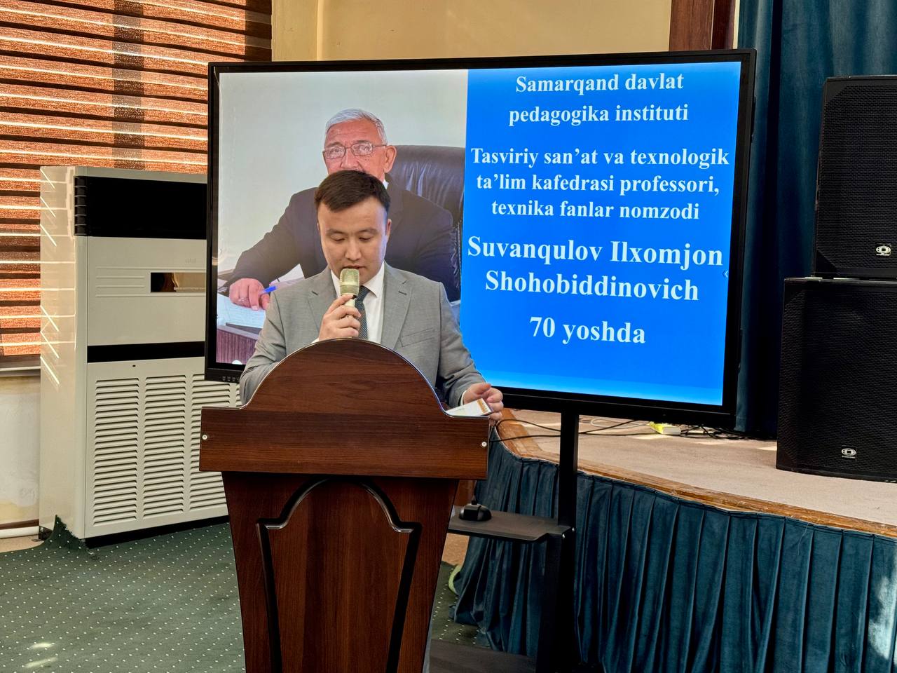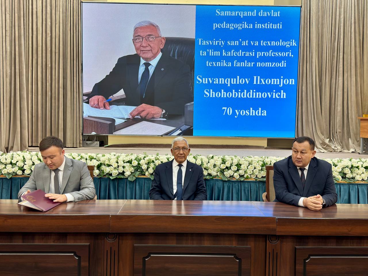 Samarqand davlat pedagogika institutida aniq va amaliy fanlar fakulteti, tasviriy san’at va texnologik ta’lim kafedrasi professori, texnika fanlari nomzodi Suvonqulov Ilhomjon Shahobiddinovichning 70 yillik yubileyi tantanali nishonlandi.