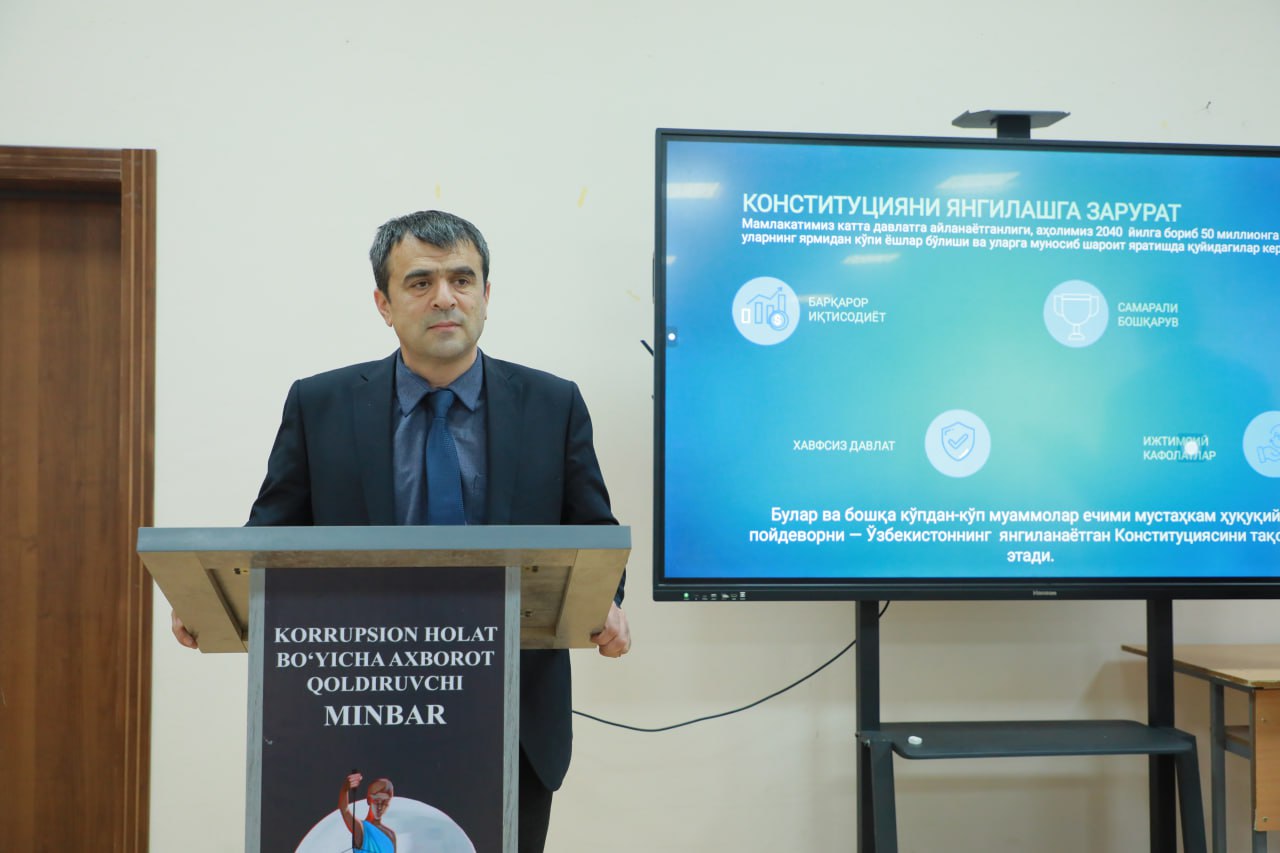 Dars jarayonida Yangi O‘zbekiston Konstitutsiyasida belgilangan asosiy yangiliklar haqida batafsil ma’lumot berilib, talabalarga quyidagi jihatlar tushuntirildi: