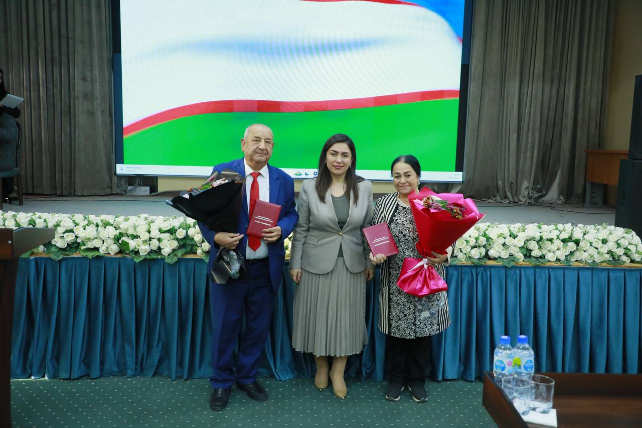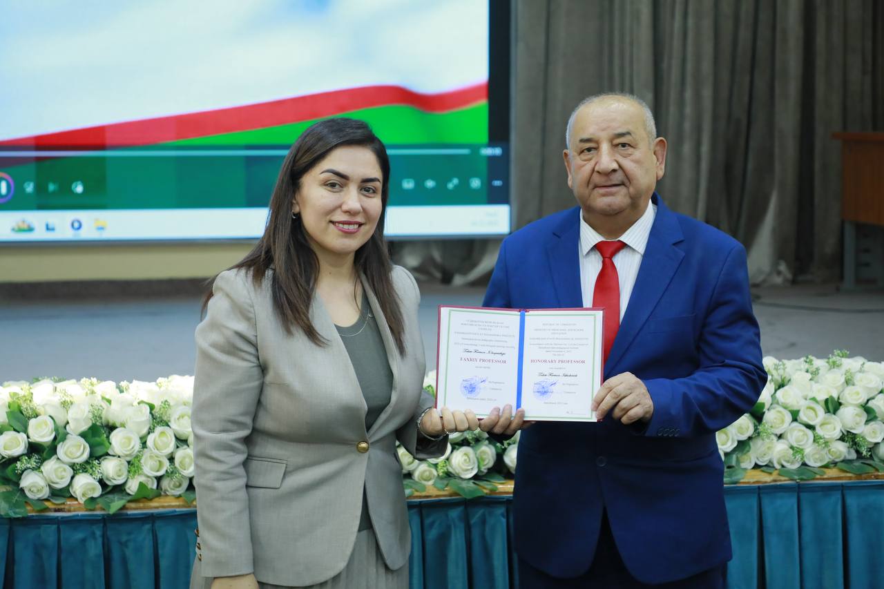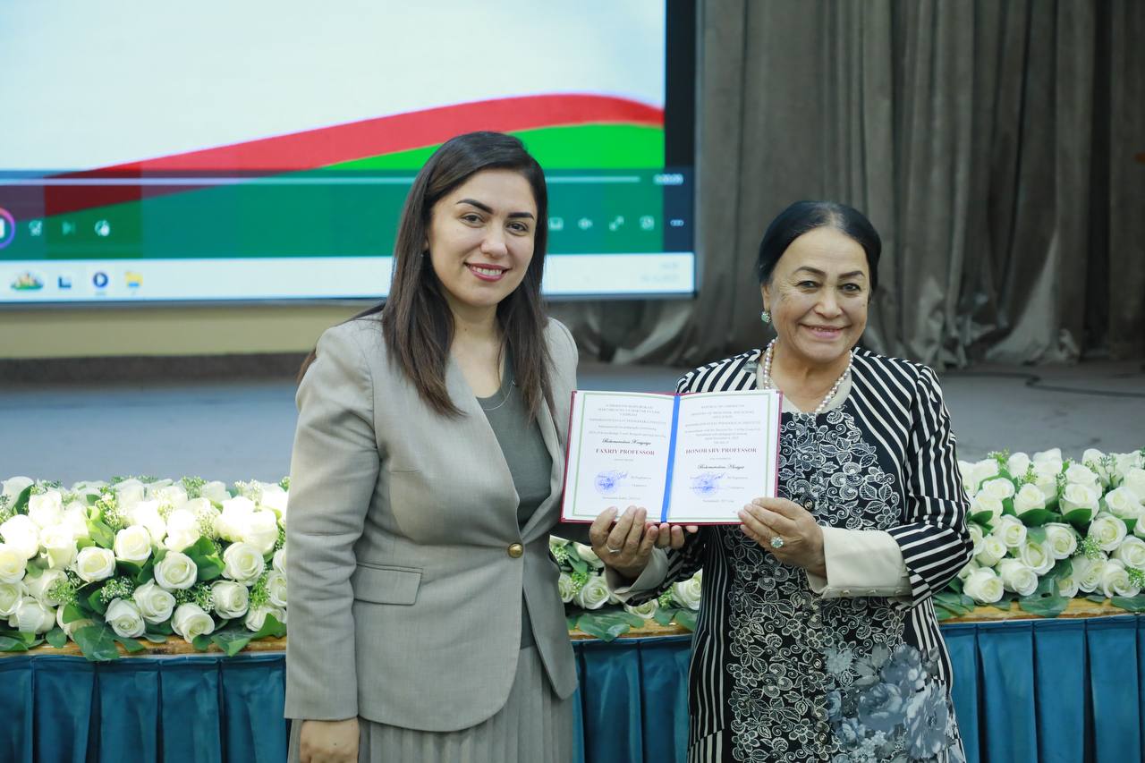 Professor Shahzoda Negmatova faxriy unvonlarni ularning egalariga tantanali ravishda topshirdi.