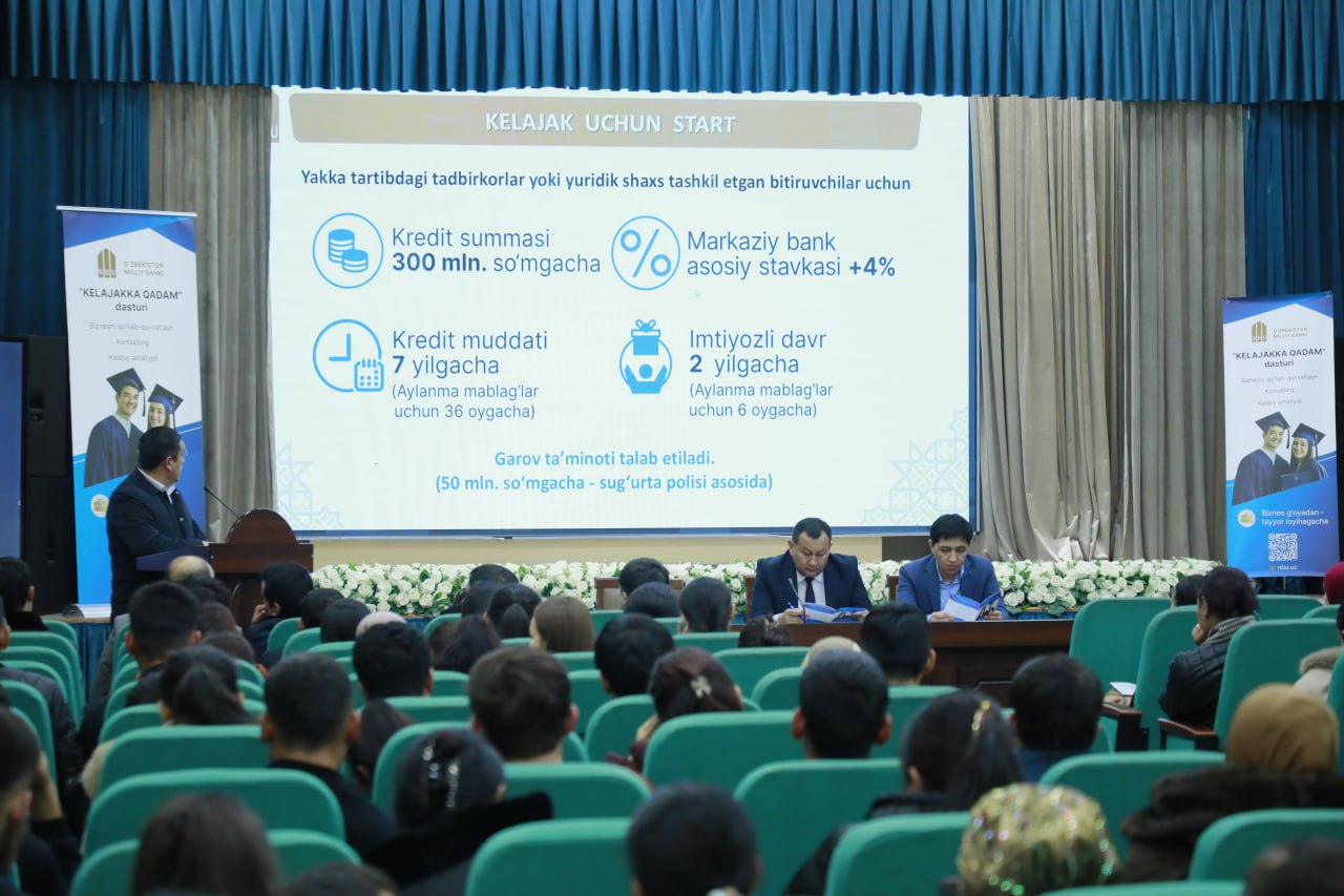 Shuningdek, o‘tgan yillarda ushbu dasturdan samarali foydalangan holda o‘z loyihalarini muvaffaqiyatli amalga oshirgan va barqaror daromad manbaiga ega bo‘lgan institut bitiruvchilari o‘z tajribalari bilan o‘rtoqlashdilar. Ular “Kelajakka qadam” dasturining yoshlar uchun yaratib berayotgan keng amaliy imkoniyatlari va real natijalarga yo‘naltirilganligi alohida e’tirof etildi.