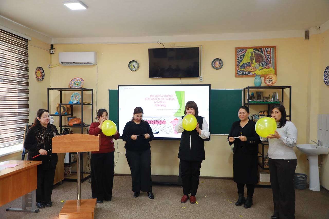 Samarqand davlat pedagogika institutida xotin-qizlar psixologi Dilafro‘z Qodirova tomonidan institut xodimlari ishtirokida “Ish joyida stressni boshqarish va samarali muloqot” mavzusida trening tashkil etildi.