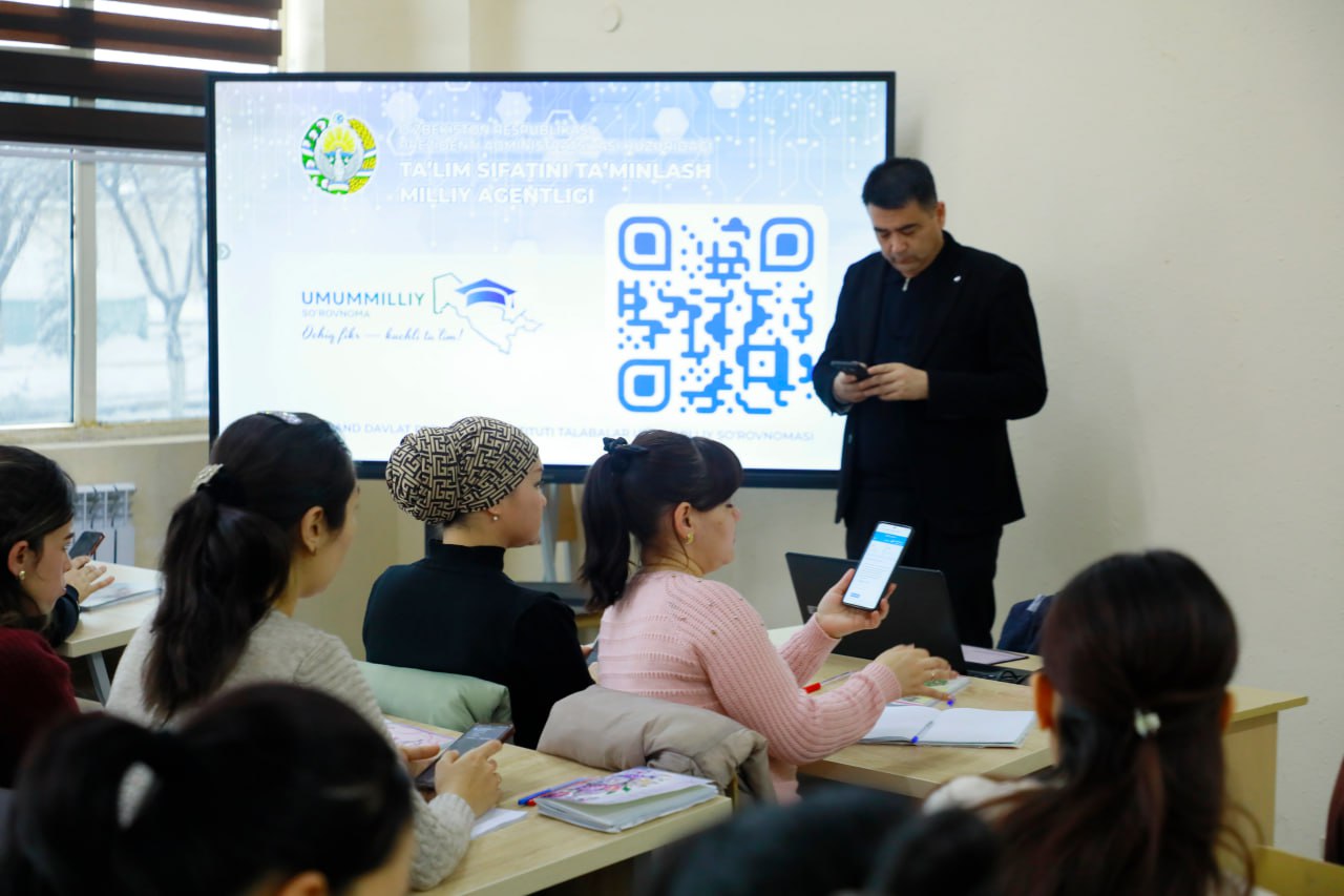 Samarqand davlat pedagogika instituti talabalari O‘zbekiston Respublikasi Prezidenti Administratsiyasi huzuridagi Ta’lim sifatini ta’minlash milliy agentligi  tomonidan respublika miqyosida o‘tkazilayotgan umummilliy so‘rovnomada faol ishtirok etmoqda.
