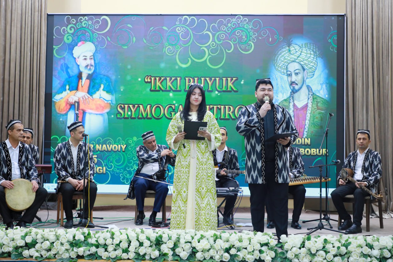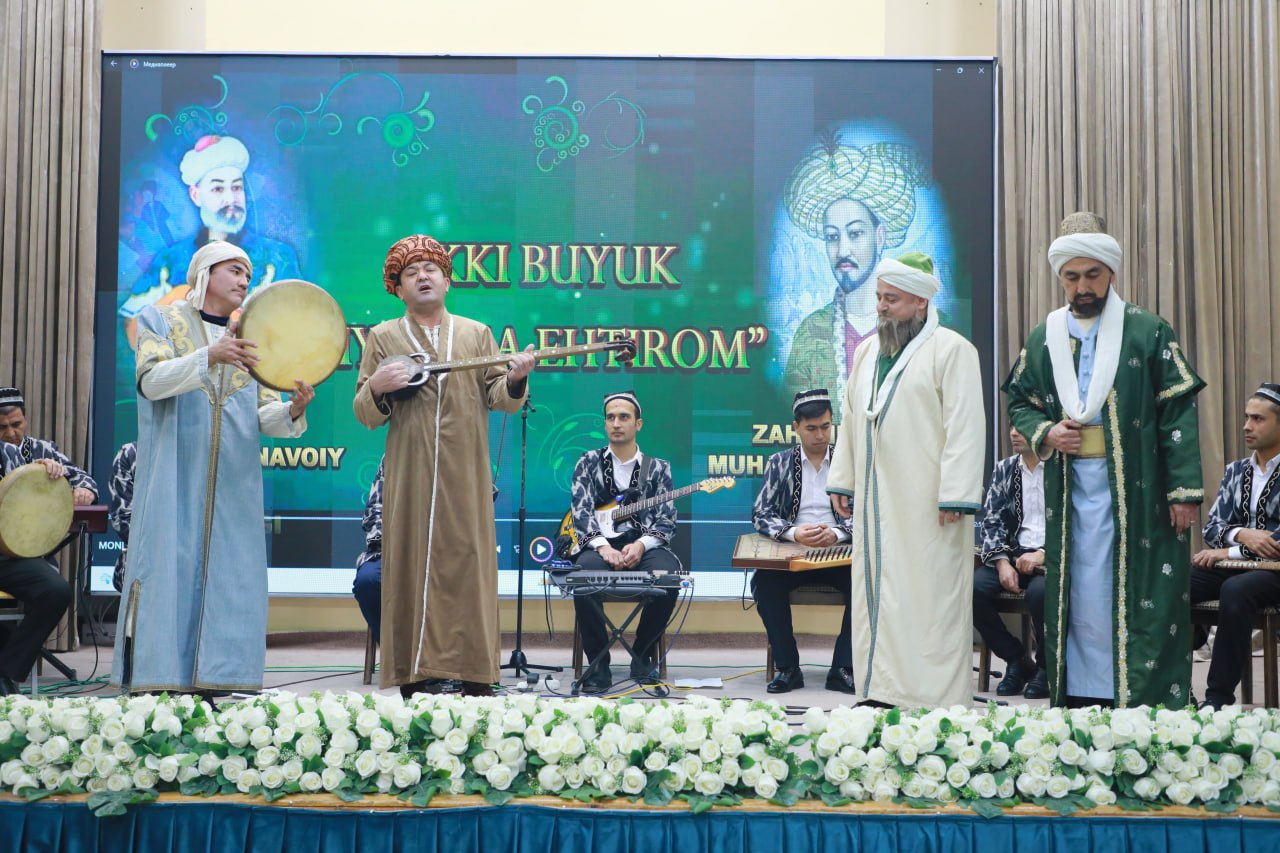 🎶 Badiiy qismda Navoiy va Bobur qalamiga mansub g‘azal, ruboiy va she’rlardan namunalar mahorat bilan o‘qildi. Shuningdek, ularning hayoti va ijodiga bag‘ishlangan sahna ko‘rinishlari namoyish etilib, viloyat maqom ansambli hamda san’atkorlar tomonidan musiqiy chiqishlar ijro etildi.