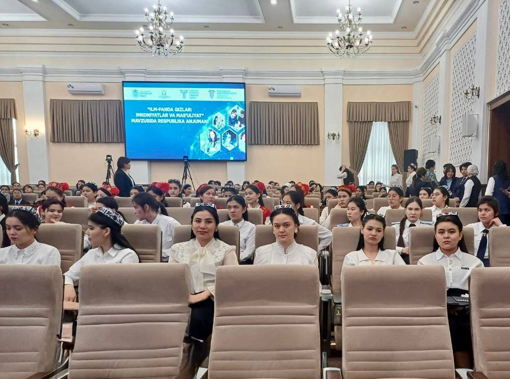 Toshkent shahrida “Ilm-fanda qizlar: imkoniyat va mas’uliyat” mavzusida respublika anjumani bo‘lib o‘tdi. Unda ilm-fan, innovatsiya va ta’lim sohalarida xotin-qizlar faolligini oshirish, ularning intellektual salohiyatini ro‘yobga chiqarish hamda ilmiy faoliyatdagi mas’uliyatini kuchaytirish masalalari muhokama qilindi.